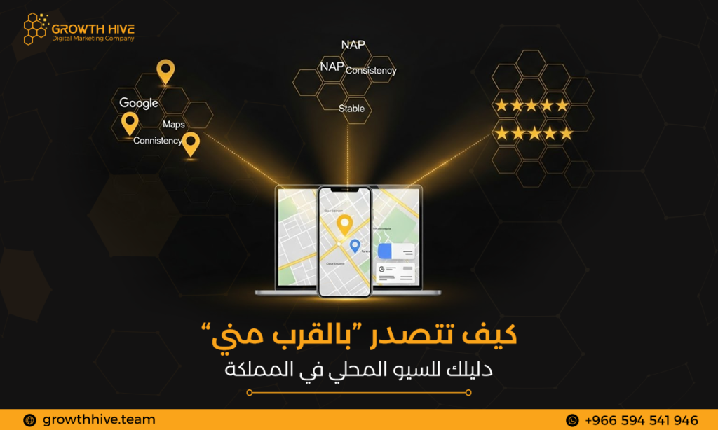 تصدر “بالقرب مني” في جوجل بالسيو المحلي: حسّن ظهور نشاطك التجاري، اجذب عملاء محليين، وزد مبيعاتك في السعودية مع جروث هايف.