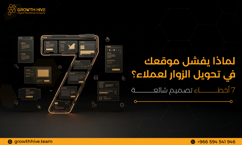 هل يفشل موقعك في البيع؟ تجنب 7 أخطاء تصميم مواقع شائعة تضر تجربة المستخدم وتقلل التحويل. اكتشف الحلول لزيادة المبيعات وتحسين أداء موقعك الآن لضمان نجاح نشاطك. تواصل مع جروث هايف.